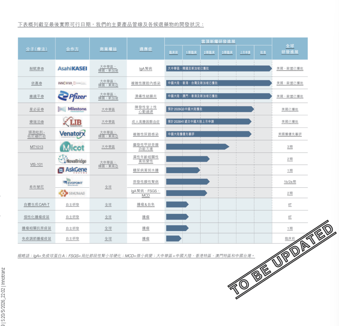 凭借稳健的现金储备与持续的经营性现金流,云顶新耀已具备坚实基础,可稳步推进业务发展战略,不断拓展全球布局,从而打造一个多元化、具备全球竞争力并能实现可持续增长的创新药产品组合。