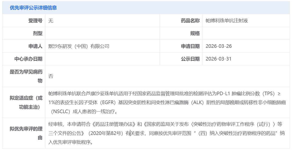 默沙东的帕博利珠单抗注射液获CDE拟纳入优先审评