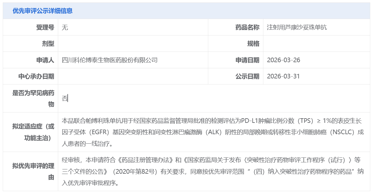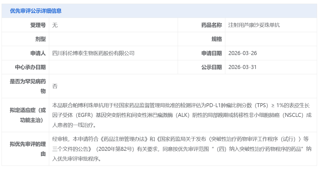 科伦博泰的注射用芦康沙妥珠单抗获CDE拟纳入优先审评