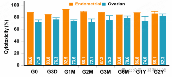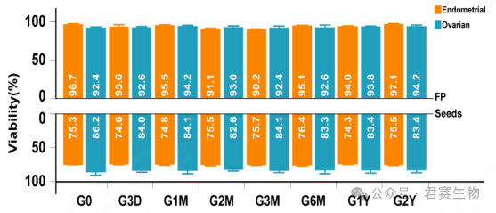 图1显示,子宫内膜癌、卵巢癌来源的TIL种子细胞及终产品经不同时长(最长2年)冻存后,复苏时细胞活率与新鲜组织对照组相比无显著差异(P>0.05)。