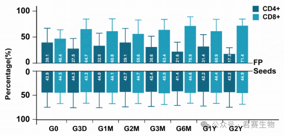 据图3,经不同时长冻存后,TIL种子细胞及终产品中T细胞的CD4⁺、CD8⁺亚群占比与对照组相比均无显著差异(P>0.05)。