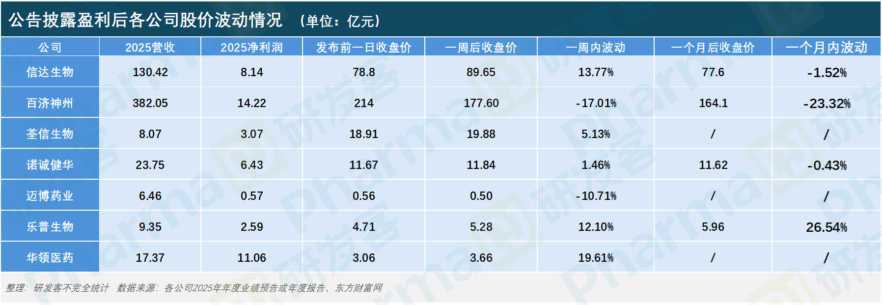 • 百济神州、信达、诺诚健华等均在2025年首度扭亏为盈;