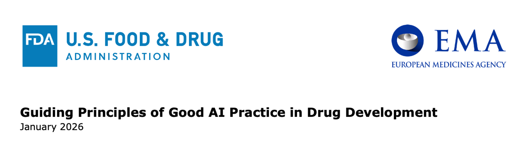 在制药行业这一强监管领域,历来有GLP、GCP、GMP等作为指引。针对AI制药(AIDD),美国FDA与欧盟EMA联合推出了专门为AI应用制定的实践指南(Practice)。