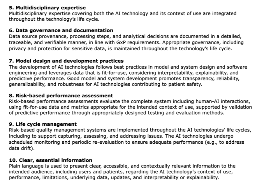 • FDA联合EMA发布的Good AI Practice(GAIP)十项原则,可视为“AI时代的质量管理规范”;