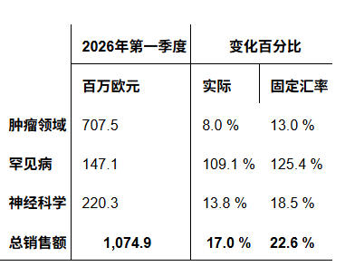 巴黎2026年4月24日-- 全球特药领域生物制药公司益普生(Euronext:IPN;ADR:IPSEY)于今日公布了2026年第一季度的销售业绩。