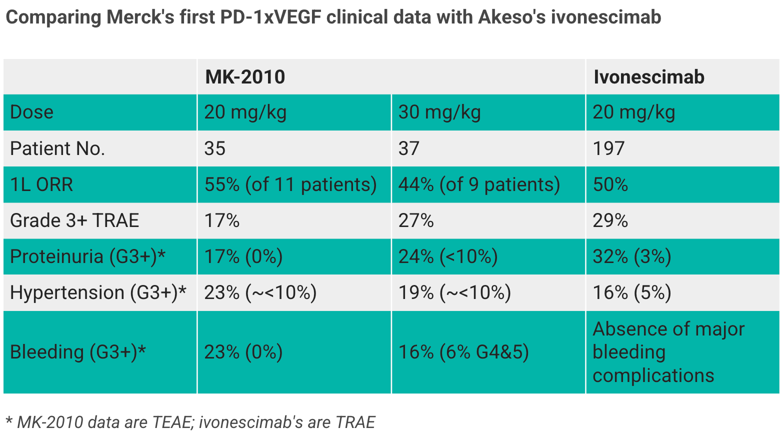 • 默沙东PD-1/VEGF双抗MK-2010的初步临床数据尚未展示出远超竞品的潜力;
