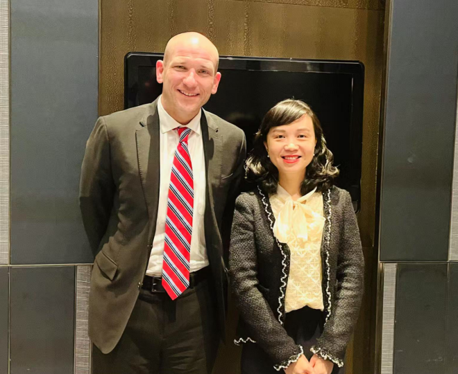 Dr. Mike Quigley and Mao Donglei, the editor-in-chief of PharmaDJ